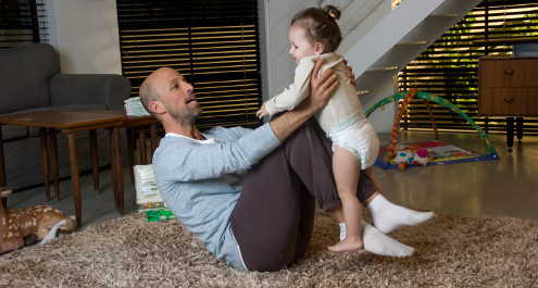 ההורה לומד לשחרר, התרגיל עוזר להסיר מחסומים ותפקידים מובנים מראש של הורה מול התינוק שלו ועוזר לתינוק להתמודד בצורה טבעית עם מצבים שונים.