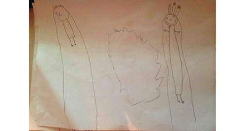 לא מדובר במצב רגשי קשה חלילה, אבל כדי שהילדה תהיה באמת פנויה ללמידה, חשוב שהלמידה תהיה על קרקע רגשית טובה. אחד הסימנים לכך בציורים הוא העובדה שדמויות האנוש שהיא מציירת מרחפות ולא עומדות באופן יציב בדף. במילים אחרות, יתכן ובגלל המעבר לארץ אחרת הילדה מרגישה (באופן טבעי) חוסר יציבות רגשי: היא מבולבלת לפעמים, מבוהלת, ונמצאת במעין דריכות כללית וטבעית להבין מה קורה סביבה, מהם כללי ההתנהגות, מהן הדרישות ממנה וכיצד עליה לפעול.