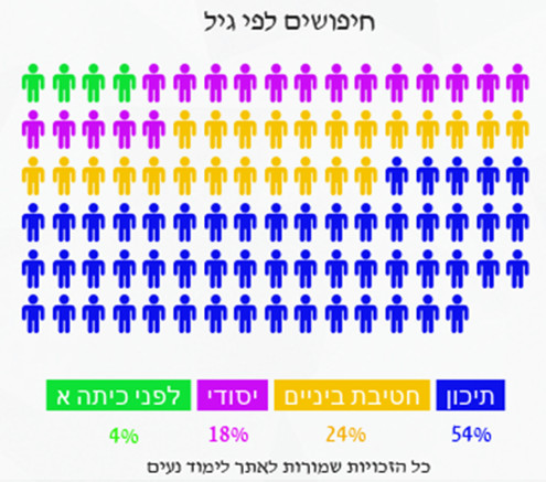 עוד עולה מהנתונים, כי 18% מהחיפושים היו עבור שיעורים פרטיים לגילאי יסודי, 24% לחטיבת ביניים ו-54% לתיכון.