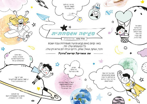 מגיע בלוק עם 32 פלייסמנטים דו צדדים. צד אחד רעיונות לפגישה משפחתית, צד שני רשימה של מה עלה בפגישה, מה אני רוצה להעלות בפגישה. הרעיון לקרב בין בני המשפחה, לשתף, להתייעץ ולהגיע לאווירה משפחתית טובה.