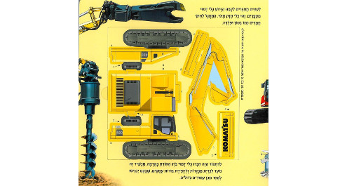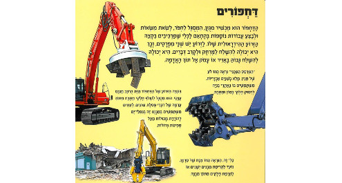 ספר חדש המכיל 4 דגמים קלים להרכבה ללא דבק או מספרים והלוקח את הילדים אל עולמם המופלא של דחפורים, טרקטורים ובולדוזרים אותם הם רואים מעת לעת פועלים באתרי הבניה או בצדי הדרכים.