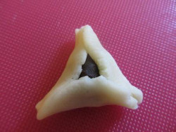 מסביב לטראפל מסמנים משולש עם קיסם, ואז מקפלים לפני הסימונים של המשולש (אפשר גם סתם לקפל אם אתם כבר יודעים איך לעשות צורה של אוזני המן).