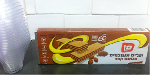 4. נקשט בופל חתוך, ואפשר להוסיף גם קישוט שוקולד בצורת פול קפה.
