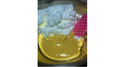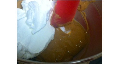 10. נקפל את הקצפת בשתי הקערות עד לקבלת קרמים אחידים.