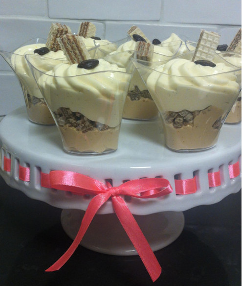 1. בתחתית כל כוס נזלף קרם פטיסייר מוקה.