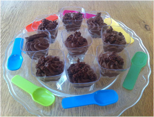 6. לאחר הקירור שוברים חתיכות ביד חופשית או שקורצים צורות ומניחים בכוסות על המוס.