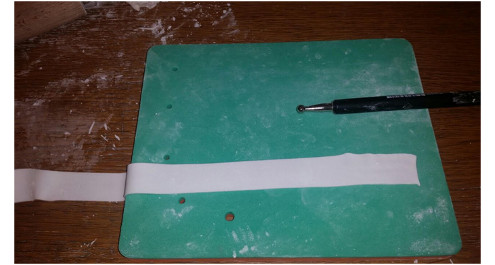 ג. בעזרת בצק סוכר לבן עם CMC יוצרים סרטים אחידים (כדי להימנע מייבוש הבצק בשלב הזה יש ליצור בכל פעם סרט אחד).