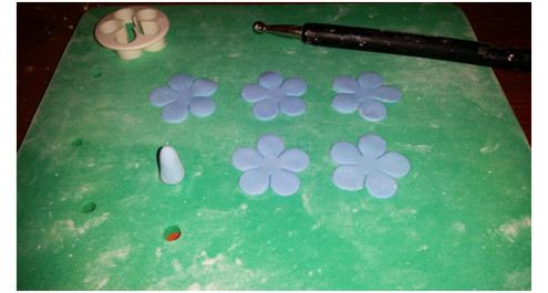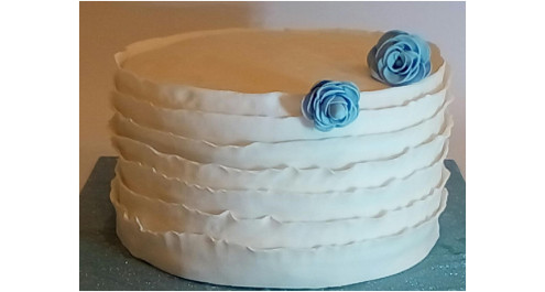 ז. אפשר להוסיף פרחים כחולים לקישוט העוגה, בסיום להדביק אותם עם קצת מים או עם רויאל אייסינג לבן.