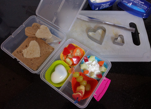 אז אני כבר בשנה שעברה ישבתי וחשבתי עם עצמי מה ניתן לשנות, הן מבחינת שבירת המונוטוניות של ארוחות עשר והן מבחינת העלאת הרמה הבריאותית שלהן קצת מעבר לכריך עם שוקולד המסורתי, והגעתי להברקה גאונית של... לאכול את הלב, אבל בפירוש המילולי של המילה. קניתי חותכנים בצורת לבבות בכל מיני גדלים והתחלתי, ביחד עם הילדים, להכין ארוחות עשר מלאות בלבבות...