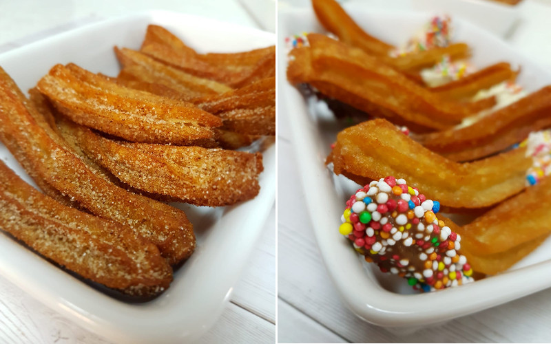למי שהתעייף מהסופגניות הרגילות, שבשנים האחרונות נמכרות בכל פינה שבועות ארוכים לפני חנוכה, הנה הצעה קצת אחרת: צ'ורוס – סופגניות ספרדיות ארוכות וזהובות, שמגלגלים בסוכר וקינמון, בשוקולד או בסוכריות צבעוניות מיד לאחר הטיגון.