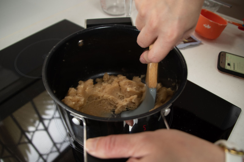 2. מורידים מהאש ונותנים לבצק להתקרר לטמפרטורת החדר, כ10-15 דקות.