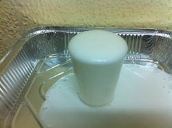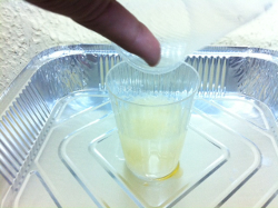 מוספים לתוך הכוס בבת אחת כרבע כוס חומץ.