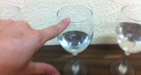 נטבול את האצבע במים ונסובב אותה בעדינות סביב הפיה של הכוס. כעבור מספר שניות נתחיל לשמוע צלילים שונים מהדהדים באוויר.