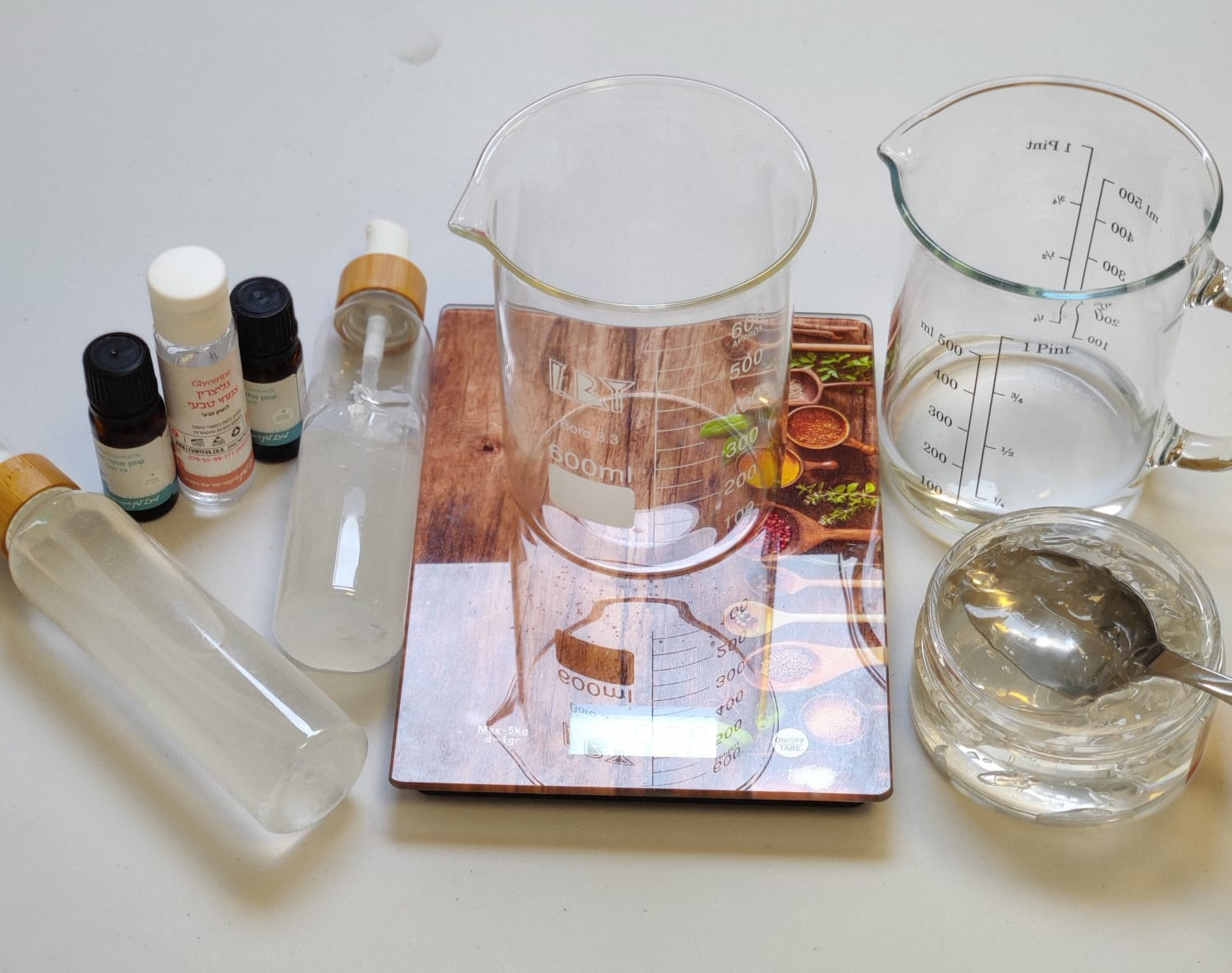 שלב 3: נוסיף כף גליצרין צמחי למאכל שמעניק לחות טבעית (מכיוון שהאלכוהול מייבש זה מאזן את הפורמולה).
