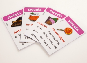 מדברים על... – משחקי רביעיות להיכרות ותרגול של אוצר מילים בנושאים שונים: בגדים, אוכל, ימי השבוע ומזג האויר, חיות, וכד‘ - מיועד לילדים הקוראים אנגלית (כיתות ד‘-ז‘).