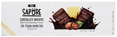 * וופל ממולא קרם אגוזי לוז מצופה שוקולד חלב, 100 גרם.