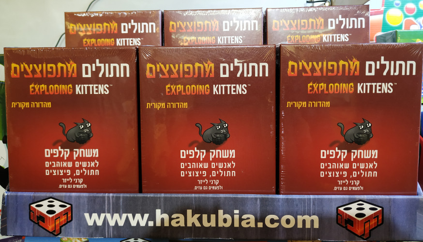 ב"חתולים מתפוצצים" שולפים השחקנים קלפים עד שאחד מהם שולף חתול מתפוצץ… ברגע שזה קורה הוא מתפוצץ, עף והוא מחוץ למשחק – אלא אם כן הוא משתמש בקלפי ניטרול כמו למשל "סמן הלייזר", "ליטופי בטן", "כריך קאטניפ" וכו‘. יתר הקלפים בחפיסה נועדו לסייע להזיז את החתולים המתפוצצים, לפייס אותם, להקל על ההתמודדות מולם ואפילו להימנע לחלוטין מלהיתקל בהם. משחק מצחיק שכל הילדים יאהבו.
