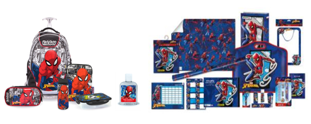 "ספיידרמן": אביזרים וכלי כתיבה מבית "פלפוט", תיקי גב, קלמרים, קופסאות אוכל ובקבוקי שתייה מבית "קל גב" ואלכוג‘ל מבית "רון ביוטיפול".