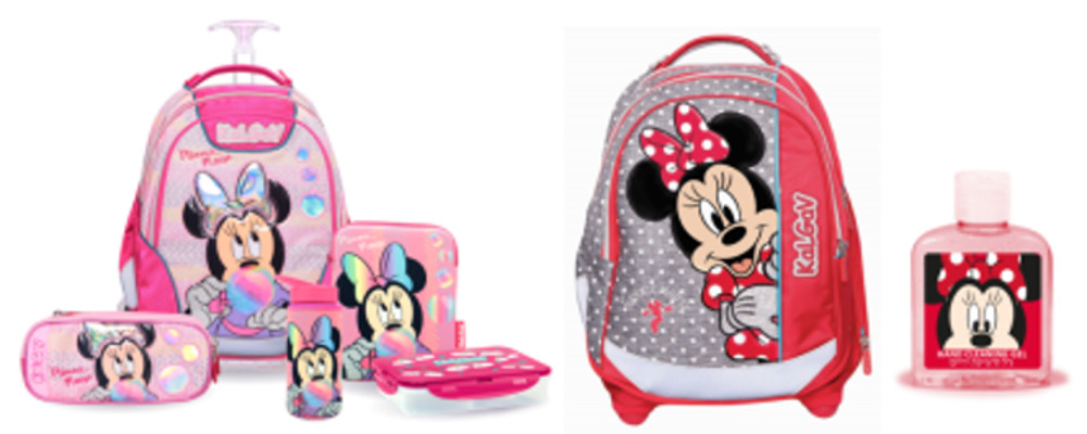 "מיני מאוס": תיקי גב, קלמרים, קופסאות אוכל ובקבוקי שתייה מבית "קל גב" ואלכוג‘ל מבית "רון ביוטיפול".