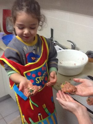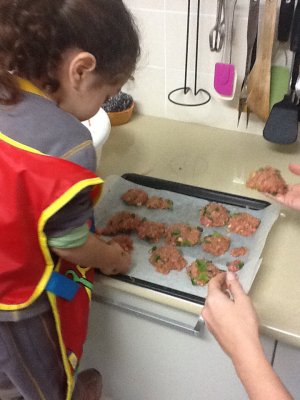 צרו יחד מהתערובת כדורים בכל מיני גדלים, לפי רצונו של הילד והניחו אותם על התבנית.