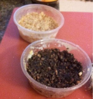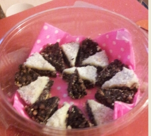 בערך שתי כוסות פצפוצי אורז (או פצפוצים ופירורי עוגיות- חצי חצי)