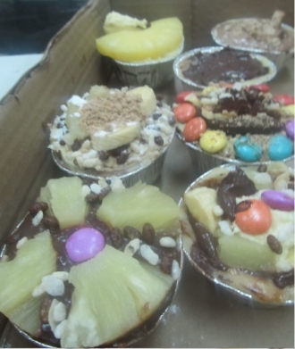 לבסיס ולקישוט- פירורי ביסקוויטים, פירות, סוכריות, עדשים ועוד...
