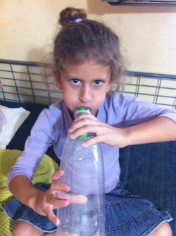 כעת, נקבו חור קטן בצידי הבקבוק ונשפו שנית. הנה קסם: הבלון יתנפח במהירות.