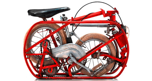 אופניים בצורת מזוודה, דגם נדיר שיוצר בבריטניה בשנת 2001.