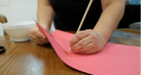 משרטטים בעזרת סרגל רצועה לאחיזה במרווח שבין העגולים משרטטים קווים לחיתוך שאותם נחתוך ונקפל כך.