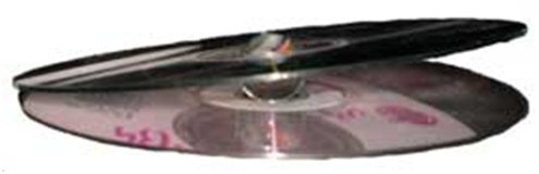 הסביבון שלנו בנוי משני דיסקים ישנים וביניהם גולת זכוכית.
