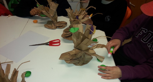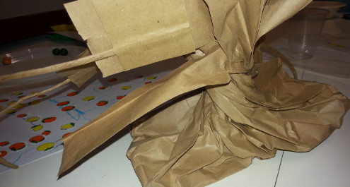פותחים ומעמידים את שקית הנייר על השולחן.