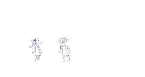 בציור שמוצג כאן, ניתן לראות שימוש שאינו חיובי בצבע הלבן. הילדה שציירה את הציור הזה, כמעט ולא מציירת, היא משאירה את רוב הדף בלובן שלו, הדמויות עומדות במרכזו והן תלושות, ללא קרקע וללא כל סביבה לתפקד בתוכה. לכן, אחת המשמעויות השליליות של הצבע הלבן, קשורה לתחושות של אובדן ובדידות. הלבן שמופיע בציורים יכול לסמל קושי חברתי של הילד, או למשל קושי לבטא את עולמו הפנימי. ציורים "לבנים" הם ציורים של ילדים שחוששים לבטא את עצמם על הדף כמו גם בסביבת חייהם, הם מציירים אלמנטים קטנים בקווים רועדים ומשאירים את רוב הדף לבן וריק מצבעים ומחיוניות של ילדות.