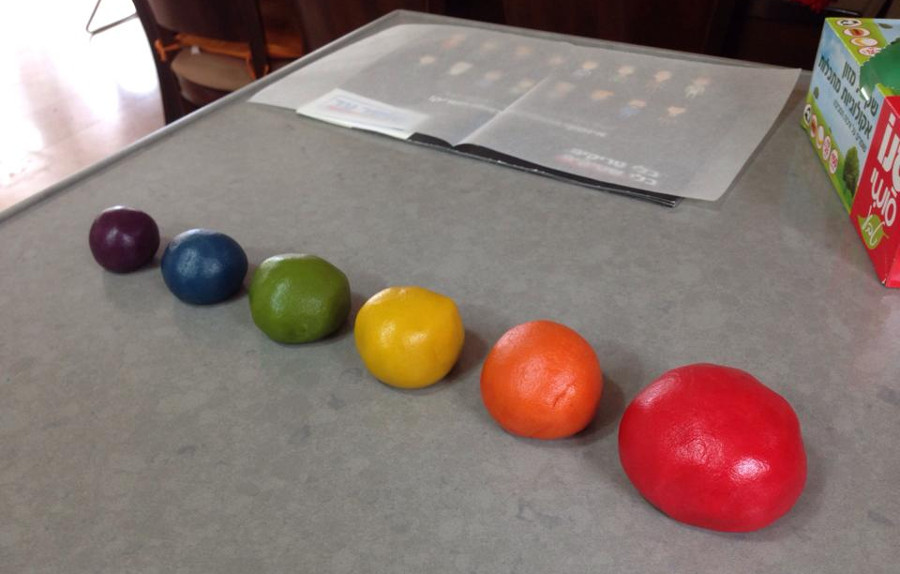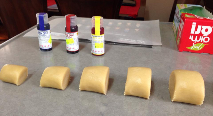 לכל כדור מוסיפים צבע מאכל שונה (ניתן להשתמש בצבעי מאכל טבעיים שניתן לקנות בכל חנות שמתמחה באפייה וימי הולדת) ושמים כל כדור בשקית ניילון נפרדת, שלא יתייבש בינתיים.