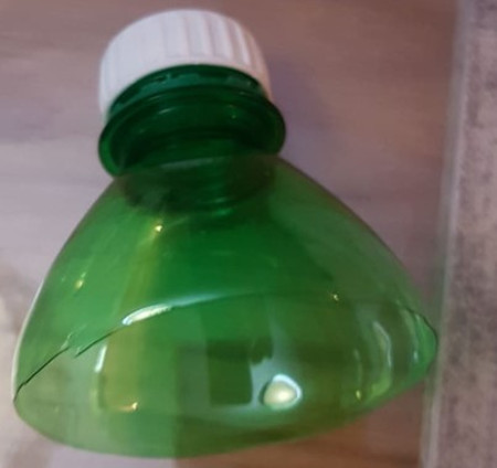 1) מאותו בקבוק בו השתמשנו עבור הסרטן, גוזרים את החלק העליון מהפקק 7-8 ס"מ כלפי מטה.